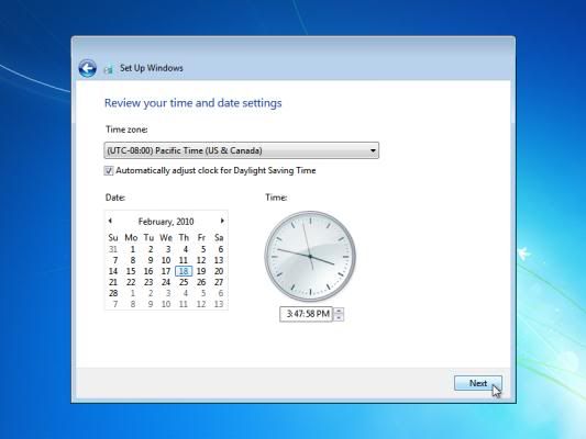 Choose your time zone and location and click on "Next".